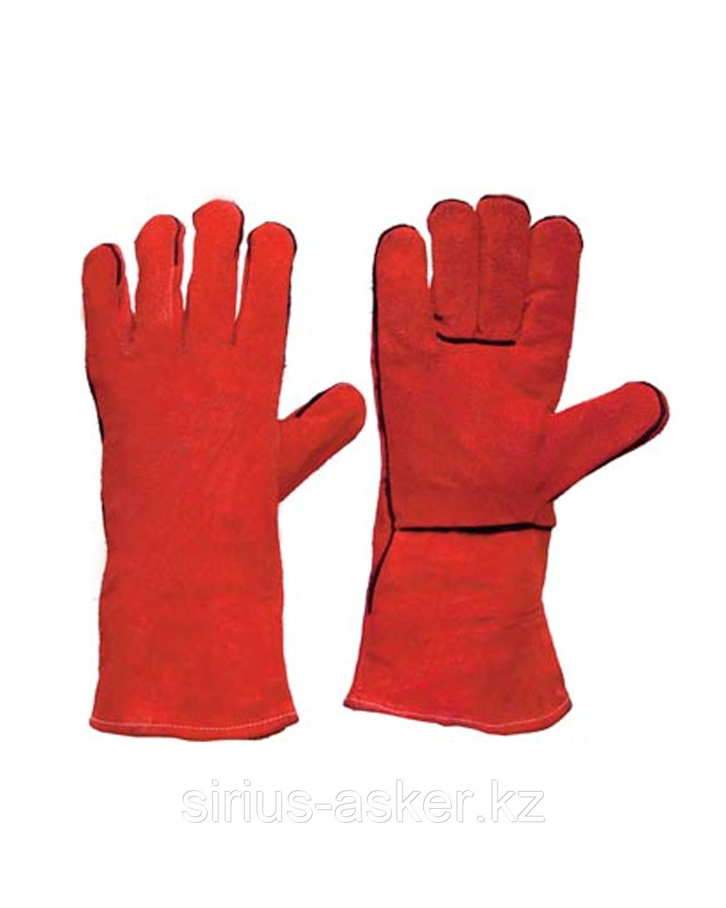 Краги спилковые (толщина 1,1- 1,2мм), пятипалые, красного цвета.