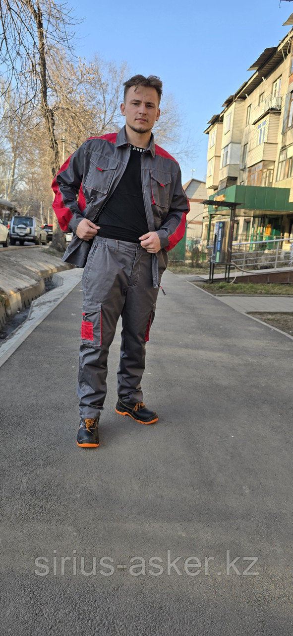 Комплект рабочей одежды из микроджинсовой ткани (серо-красный)